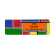 Ces étiquettes d'adresse de retour ont une conception Bauhaus de rectangles formés de lignes grises et remplis de rouge, jaune, orange, bleu et vert sur un champ de noir.
