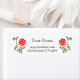 Une étiquette d'adresse de retour personnalisée avec des lettres esquissées et standard centrées entre l'art vintage des marguerites et la décoration de curling en rouge et or, restaurée à partir d'un manuscrit antique.
