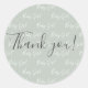 Autocollant bébé fille couleur sauge avec écriture blanche « Merci » rond. Tellement mignon.