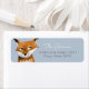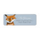 une étiquette de vacances de Noël moderne et mignonne de la forêt avec un renard peint à la main sur un fond bleu. Œuvre originale de Caroline Bonne Müller