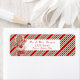 Étiquettes mignonnes pour tous vos envois de vacances. Renne drôle, amusant portant une écharpe rouge, et ayant des ornements rouges suspendus à ses bois. Le fond est une jolie rayure rouge, verte et blanche. Personnalisez avec vos informations.
