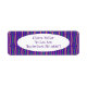 Ces étiquettes d'adresse de retour ont un design géométrique Mardi Gras de sorte d'ovales plats répétant à travers le design en or et vert sur un champ de violet.