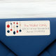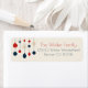 Jolie carte de Noël rétro, retournez des étiquettes d'adresse avec des ornements de style 70 vintages en rouge, bleu et ivoire au-dessus de votre nom de famille. De beaux étiquettes nostalgiques de voyage de vacances.
