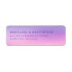 This return address label features a soft gradient background transitioning from light purple to gentle pink, creating a calming and romantic atmosphere. The design includes elegant serif typography that is centered for readability, with customizable placeholder text for names and addresses. Its minimalist style focuses on clarity and sophistication, making it perfect for formal occasions like weddings or significant announcements. The serene color palette and understated aesthetic evoke warmth and intimacy, ideal for personalizing your envelopes with a touch of classic refinement.