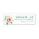 This return address label features a minimalist design with a soft pink rose and delicate green leaves, creating an elegant botanical aesthetic. The pastel color palette of blush pink, vibrant green, and crisp white evokes a sense of tranquility and sophistication. The clean layout combines modern typography with classic floral imagery, making it perfect for formal occasions. Its refined style and ample negative space ensure clarity and visual appeal, ideal for adding a touch of grace to your correspondence.
