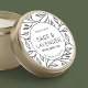 Modèle minimaliste de étiquette de produit rond avec arrière - plan botanique en noir et blanc avec polices modernes. Créez un packaging professionnel pour vos bougies, vos fontes de cire, votre beurre corporel, vos cosmétiques ou tout autre type de produit en utilisant ce design vintage autocollant floral - idéal pour l'utilisation de couvercles de jarre ou sur l'avant de vos produits. Ce étiquette circulaire entièrement modifiable vous permet de customiser tout le texte, les couleurs et la mise en page pour convenir à votre marque.