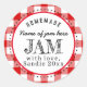 Une étiquette ronde de cadeau personnalisé fait maison avec un design à carreaux rouges de buffle.