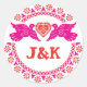Inséparables autocollant ou enveloppe scellée avec un flair mexicain ou sud-ouest. Ce design fait partie de mon ensemble de design d'invitation "Lovebirds" de style picado papel. Vous tapez vos propres initiales (ou message) au centre, et choisissez votre propre police et couleur de police. Contactez-moi si vous voulez ce étiquette dans une couleur différente. La couleur rouge est EE2C26, le rose est E70288
