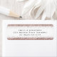Rose Gold Parties scintillant Script Blanc Nom de retour Adresse. Pour vous coordonner avec d'autres articles de cette collection de mariages et d'occasions, personnalisez facilement votre nom et adresse de retour. Une bordure glamour de fausse parties scintillant en or rose est en haut et en bas sur un arrière - plan noir classique.