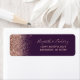 Le bord gauche de cette élégante étiquette d'adresse de retour mariage moderne présente une conception rose en faux parties scintillant or. Le texte personnalisable combine écriture rose pâle, copperplate et polices italiques sur un arrière - plan violet foncé.