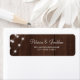 Rustic country brown barn wood string evening lights elegant calligraphy script wedding invitation return address labels.