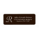Un arrière - plan de brun rustique à la texture fausse décore ces étiquettes d'adresse de retour monogrammées et élégantes. Le texte est gris pâle. Vous pouvez facilement modifier le MONOGRAM, le NOM et l'ADRESSE. Ces étiquettes sont parfaits pour des invitations, des notes de remerciement, des cadeaux de réveil ménager - n'importe quelle occasion! Tous droits réservés © 2015 Alan & Marcia Socolik.