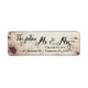 Une étiquette simple et rustique d'adresse de retour moderne pour le futur M. et Mme en belle typographie de script sur un arrière - plan en bois. Élégantes étiquettes d'adresse de retour à utiliser pour les mariages, douches nuptiales ou tout autre envoi avant votre mariage.