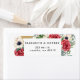 Rustique Elegant Rouge et or Floral Blanc Mariage Étiquettes de adresse. Design Caractéristiques Fleurs Rouges, Anémones et Fleurs Blanches avec Verdure Elégant Cadre Rustique Or Avec Retour