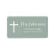Étiquette Sage Green Cross Boy Baptism Adresse de retour Lab