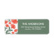 Étiquette Sage Green Red Watercolour Floral Return Address