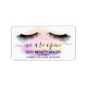 Un étiquette de adresse pour la réouverture de votre salon de beauté, d'affaires ou d'un maquilleur après Covid-19, le virus de la corona. Un arrière - plan blanc avec des touches de brosse peintes de couleur pastel clair, rose, violet, jaune, faux or. Décoré de cils noirs. Devant : Le texte : Nous sommes ouverts. Personnalisez et ajoutez vos nom, adresse et coordonnées.