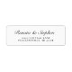Étiquettes simples et élégantes d'adresse de mariage, avec vos noms dans un script noir arrondi et votre adresse dans la police serif.