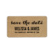 Burlap Beige Rustique Script Wedding Save the Date Étiquette de adresse. Design par Elke Clarke© pour MonogramGallery imprimé par Zazzle. Envoyez vos cartes de dates à vos amis et votre famille en utilisant ce étiquette simple et magnifique avec les mots "enregistrer la date" écrit dans une écriture manuscrite noire typographie script superposition texte. Effet photo imprimé de l'arrière - plan burlap beige. Autres couleurs disponibles.