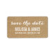 Burlap Beige Rustique Script Wedding Save the Date Étiquette de adresse. Design par Elke Clarke© pour MonogramGallery imprimé par Zazzle. Envoyez vos cartes de dates à vos amis et votre famille en utilisant ce étiquette simple et magnifique avec les mots "enregistrer la date" écrit dans une main blanche écriture typographie script texte superposition. Effet photo imprimé de l'arrière - plan burlap beige. Autres couleurs disponibles.