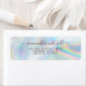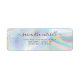 "Étiquette d'adresse de retour de l'arrière - plan holographique mignon et brillant pour les propriétaires de petites entreprises et les grandes entreprises. Le design comprend un arrière - plan moderne, script, typographie, polices tendance et simple mais efficace. Parfait pour un esthéticien ou un propriétaire de salon de beauté, un maquilleur, un costumier, un coiffeur, un coiffeur ou un cosmétologue." Ajoutez simplement votre logo, votre nom et vos détails commerciaux à cette carte lumineuse et moderne en cliquant sur le bouton "Personnaliser" ci-dessus. REMARQUE : Les détails holographiques sont simulés dans l'illustration. Il n'y aura aucun effet holographique réel de brillance lors de l'impression.
