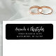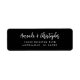 Cette étiquette d'adresse de retour mariage simple et moderne comporte les noms du couple en écriture blanche stylée, avec deux lignes pour l'adresse ci-dessous en police blanche sans serif sur un arrière - plan noir.