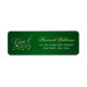 Elegant script font class of 2021 graduation return address labels. Un shown en or, blanc et vert.