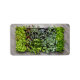 Tray of cool season vegetable seedlings - lettuce, radicchio, kale, Swiss, tatsoi, cabbage, and broccoli - on a wooden background