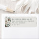 These return address labels feature a serene and sophisticated design with a balanced layout, combining muted earth tones of soft greens, browns, and creams. The left side showcases a delicate botanical pattern of pine cones, leaves, and berries, while the right side offers customizable text in an elegant serif font on a plain background. The overall style is rustic yet refined, perfect for formal occasions, capturing a natural, organic feel with a touch of modern minimalism.