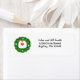 Étiquette d'adresse de retour avec ma conception d'une couronne verte de Noël décorée de coeurs colorés.
