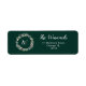 Ce étiquette de adresse festif et amusant présente une couronne de poinsettias roses et un saint sur un arrière - plan vert foncé. Le texte combine écriture manuscrite et polices serif pour un look élégant et sophistiqué. Il est parfait pour les fêtes de vacances, brunches, dîners, open house et plus encore.