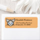 Jolie illustration graphique représentant le visage d'un chat siamois aux couleurs bouffantes, centre clair sur foncé, aux yeux bleu pâle décore ce étiquette de adresse personnalisé.