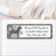 Étiquettes de adresse monochromes Pit Bull pour amoureux des chiens moderne. Une silhouette de race grise est empilée devant un empreinte de patte argenté, avec un arrière - plan grossier.