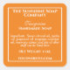 Un étiquette pour les produits de bain et de soins du corps avec un arrière - plan orange et un texte blanc.