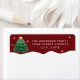 Simple élégant arbre de Noël neigeux étoilé sur étiquette rouge