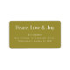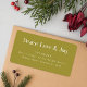 Send your holiday mail in style with these elegant Christmas return address labels featuring a warm olive background and refined typography that reads “Peace, Love & Joy.” Perfect for adding a thoughtful touch to cards, gifts, and festive correspondence, these holiday mailing labels for Christmas combine timeless simplicity with a modern minimalist feel. Personalize them with your family name and address to create a polished, custom finish.
