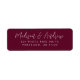 Des étiquettes d'adresse de retour mariage simples avec vos noms dans un élégant script blanc avec un arrière - plan bordeaux. Personnalisez les étiquettes d'adresse de retour du mariage moderne avec votre adresse. Conçu pour coordonner avec notre collection Simple Script mariage.