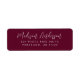 Des étiquettes d'adresse de retour simples portant votre nom dans un élégant script blanc avec un arrière - plan bordeaux. Personnalisez les étiquettes d'adresse de retour modernes avec votre adresse. Conçu pour coordonner avec notre collection Simple Script mariage.