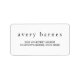 Design, minimaliste et élégant dans les tons noir et blanc. Une parfaite fusion de style et de professionnalisme fait de ce étiquette de adresse blanc simple parfait pour les professionnels conservateurs à ceux qui recherchent un look chic et hanche, mais minimaliste dans le toucher. Ce design sobre et élégant est parfait pour les salons de beauté, les spas, les cosmétologistes, les photographes, les esthéticiens, les studios de danse, les boutiques, les créateurs de bijoux, les stylistes de cheveux et de mode ou tout autre professionnel sensibilisé à l'image.