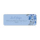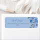 Élégant Calligraphie Script Something Blue Fête de Mariage Thème Étiquette d'Adresse de Retour avec des fleurs aquarelles. De l'autre côté, il y a des verres de champagne avec un bouquet.