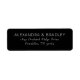 These return address labels feature a sleek, minimalist design with a bold black background and crisp white text. The layout is clean and centered, showcasing elegant serif typography that conveys sophistication and professionalism. Perfect for formal correspondence or invitations, the high-contrast color palette ensures clarity and readability while maintaining a refined aesthetic. The absence of additional graphics keeps the focus on your personalized information, making these labels ideal for those who appreciate simplicity and style in their stationery.
