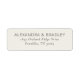 These return address labels feature a minimalist and clean layout with centered text on a light-colored background, creating an elegant and uncluttered appearance. The design utilizes a soft, neutral gray color palette for the text against a white or off-white backdrop, enhancing readability and maintaining a sophisticated tone. Typography plays a central role, with bold serif fonts for names and lighter sans-serif fonts for addresses, offering a modern yet timeless aesthetic. Perfect for those who appreciate simplicity and clarity, these labels convey a sense of professionalism and refinement.