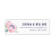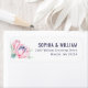 This return address label features a minimalist layout with a delicate pink protea flower illustration on the left, showcasing soft pastel hues and subtle blue accents. The right side presents elegant serif typography for customization, arranged in a balanced composition that conveys sophistication and tranquility. Perfect for adding a touch of natural beauty to your mail, this design combines artistic watercolor textures with refined elements, ideal for those who appreciate understated elegance.