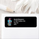 Étiquettes de adresse avec une illustration d'un squelette humoristique. Portant un chapeau haut, tenant un verre. Il a un grand sourire sur le visage. Amusement sympa et éffrayant pour Halloween.