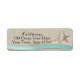 Étiquette d'adresse de retour de plage rustique Starfish et ruban accentuée dans la conception de ruban d'aqua et de pêche pour compléter notre étoile de mer et dentelle avec des invitations à ruban d'aqua.