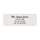 Lorsque votre nom et votre adresse sont suffisants, l'arrière - plan n'a pas vraiment d'importance ! Pourtant, une structure douce, blanche sur blanc, fait ressortir votre nom ! Ce étiquette de adresse est disponible en 6 versions couleur - le nom est imprimé soit en violet, soit en rouge, en rose, en bleu, en vert ou en noir. Tout le texte peut être facilement customisé.