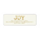 Classy Stylish JOY Typography Block Faux Gold Parties scintillant On Ivory Cream, Modern Holiday Return Address Labels. Conçu par fat*fa*tin. Facile à customiser avec votre propre texte, photo ou image. Pour des demandes personnalisées, veuillez contacter fat*fa*tin directement. Des frais personnalisés s'appliquent. www.zazzle.com/fat_fa_tin www.zazzle.com/color_therapy www.zazzle.com/fatfatin_blue_knot www.zazzle.com/fatfatin_red_knot www.zazzle.com/fatfatin_mini_me www.zazzle.com/fatfatin_box www.zazzle.com/fatfatin_design www.zazzle.com/fatfatin_ink