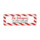 Ajoutez une touche de joie de Noël à vos mailings de Noël avec cette étiquette d'adresse de retour festive. Le design est composé d'un motif à rayures de sucre de canne rouge et blanc classique et d'un magnifique texte de script de calligraphie. C'est la façon idéale d'ajouter un peu de magie à votre correspondance de vacances.