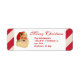 Jolly Santa Claus, avec une branche de saint dans son casquette, est présenté avec une bordure de sucre de canne rayée. Joyeux Noël est écrit dans un script rouge festif foncé avec votre nom et adresse personnalisés. Si vous préférez seulement votre adresse, omettez le nom de famille. Joyeux Noël peut être changé si il convient à la région, à Joyeux jours fériés par exemple. Amusant et coloré pour les vacances. Convient uniquement à l'option produit de petite taille.