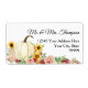 Adresse de retour étiquettes d'envoi pour les invitations de mariage, bébé et nuptiale douche. Parfait pour les événements de la fin de l'été et de l'automne. L'oeuvre Watercolor a été créée par Audrey Jeanne Roberts, artiste et designer de renommée internationale. Un élégant citrouille blanc est entouré d'un bouquet de tournesols, de roses roses rousses et de fleurs rouges bordeaux. Les feuillages sèches botaniques simples dans les tons de terre brune sont associés à la végétation boisée, à l'eucalyptus de style boho et aux feuilles de bois cueillis. Droit d'auteur .